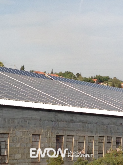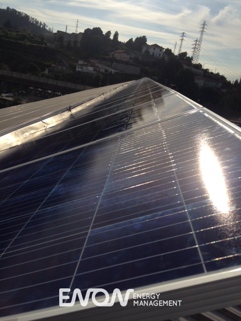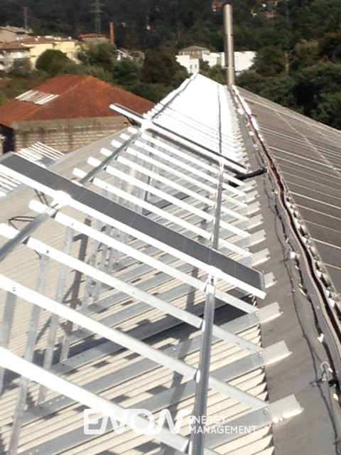 Principais benefícios da intervenção ENON: Aproveitamento da inclinação do telhado para colocar painéis coplanares e produzir grande parte da energia necessária para a empresa